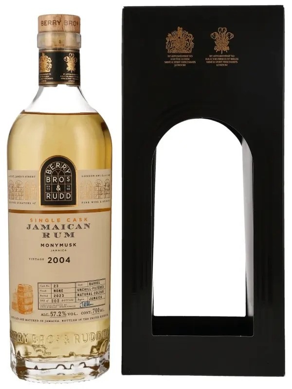 Berry Bros. & Rudd bottelt niet alleen onafhankelijk briljante whisky's. Het team krijgt ook zo nu en dan uitzonderlijke rums in handen – en dat is precies wat hier is gebeurd! Dit is een single cask botteling van Monymusk Jamaicaanse rum, gedistilleerd in 2004 en gerijpt tot 2021. Na die lange rustperiode werd de rum uit het vat gehaald en gebotteld op vatsterkte. Je ziet tegenwoordig niet veel Monymusk rum meer, wat erg jammer is, want het is fantastisch, smaakvol en funky spul. Er zijn slechts 250 flessen van deze specifieke release geproduceerd.